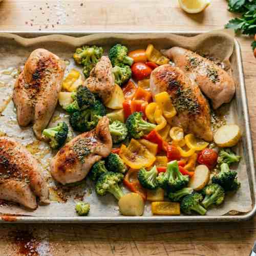 If you need a simple dinner that does not take much time, this sheet pan chicken recipe is a great choice. Everything cooks on one pan, which means less cleanup and less stress after a long day. This is one of the best easy sheet pan dinners because it uses basic ingredients and simple steps. The chicken turns out juicy, the vegetables get soft and slightly crispy, and the whole meal is full of flavor. Why You Will Love This Easy Sheet Pan Chicken Recipe Ingredients for Sheet Pan Chicken Ingredient Notes and Substitutions Step-by-Step Instructions for Sheet Pan Chicken…