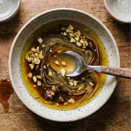 - In a medium mixing bowl, combine pineapple juice, soy sauce, olive oil, and brown sugar. Stir until the sugar starts to dissolve and the mixture looks slightly thick and glossy. Add minced garlic, salt, and black pepper, and mix well.