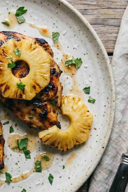 - Serve the grilled chicken topped with pineapple slices. Spoon any remaining juices over the top if desired.