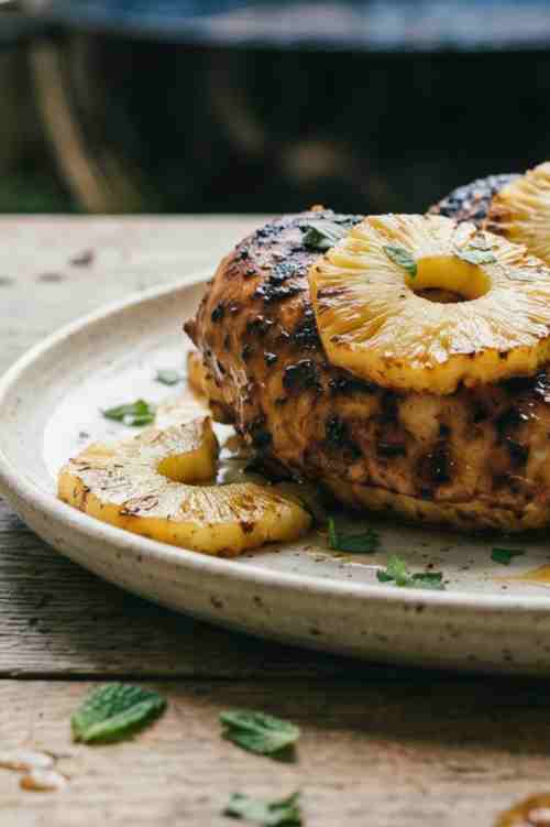 Remove the chicken from the grill and let it rest for about 5 minutes. This helps keep the juices inside the meat. Place the grilled pineapple slices on top of the chicken or serve them on the side. Spoon a little extra juice over the top if desired.
