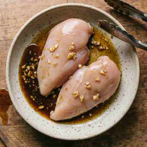 - Place the chicken breasts in a shallow dish or a resealable bag. Pour the marinade over the chicken, ensuring all pieces are evenly coated. Turn the chicken a few times to fully cover it in the marinade.