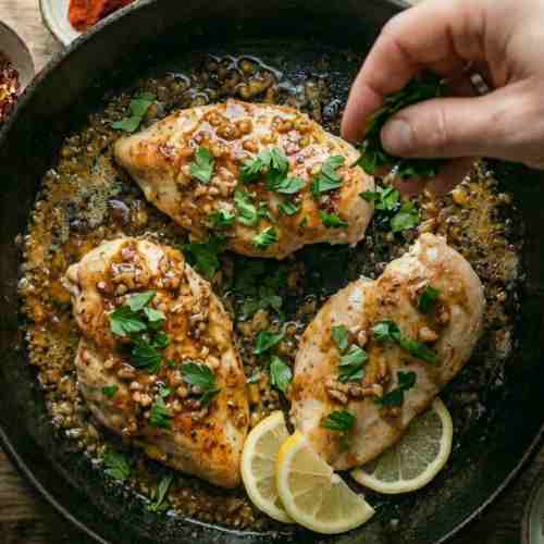 - Sprinkle chopped parsley on top and let the chicken rest for a few minutes before serving.