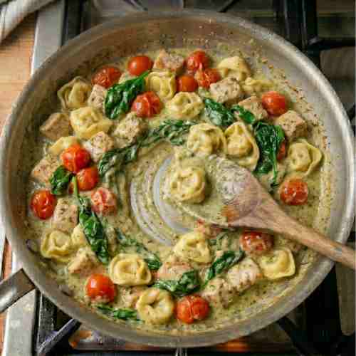 - Use fresh ingredients for the best creamy pesto chicken tortellini flavor