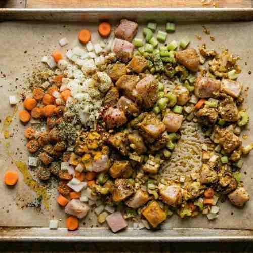 - Do not overcrowd the sheet pan. If the pan is too full, the food will steam instead of roast. Use two pans if needed.