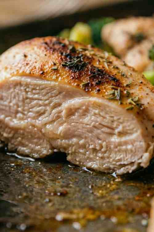 - Check that chicken reaches an internal temperature of 165°F and vegetables are tender with slightly crispy edges.